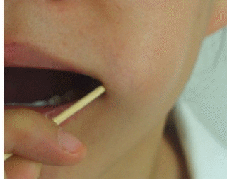 2、選擇不同的口腔壁以同樣的方法采集第二根棉簽,每個人至少要提取三根棉簽。